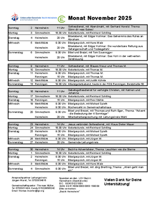 Gemeinsam wollen wir in unseren Gemeindeveranstaltungen Jesus Christus erleben, die Botschaft der Bibel als Wort des lebendigen Gottes neu für uns entdecken und daraus Impulse für unseren Alltag mitnehmen.
